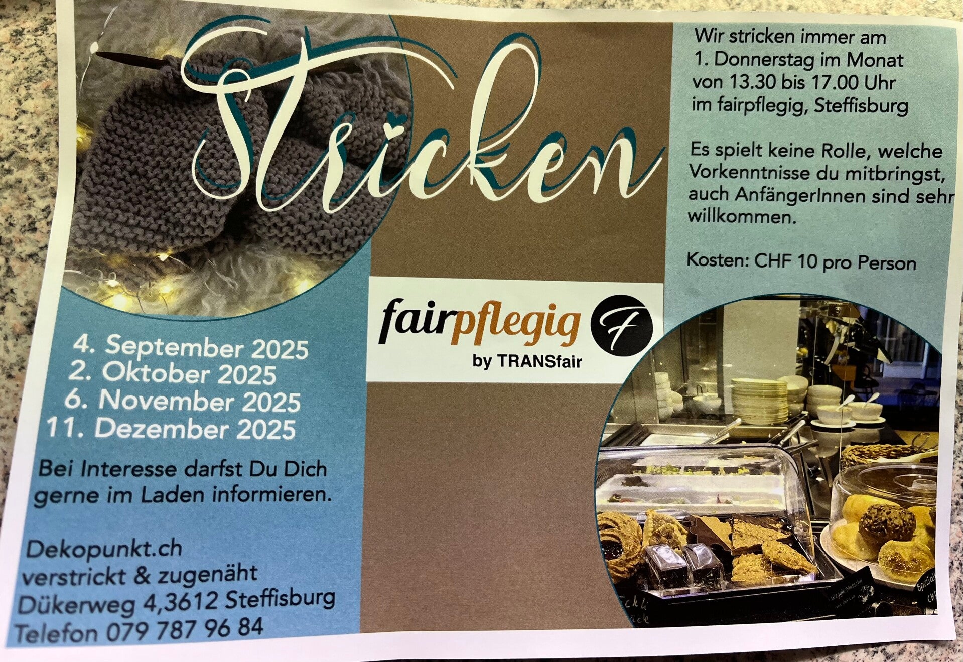 Am Donnerstag 11. Dezember stricken wir im Transfair Restaurant der Laden öffnet erst um 17.30 bis 20 Uhr